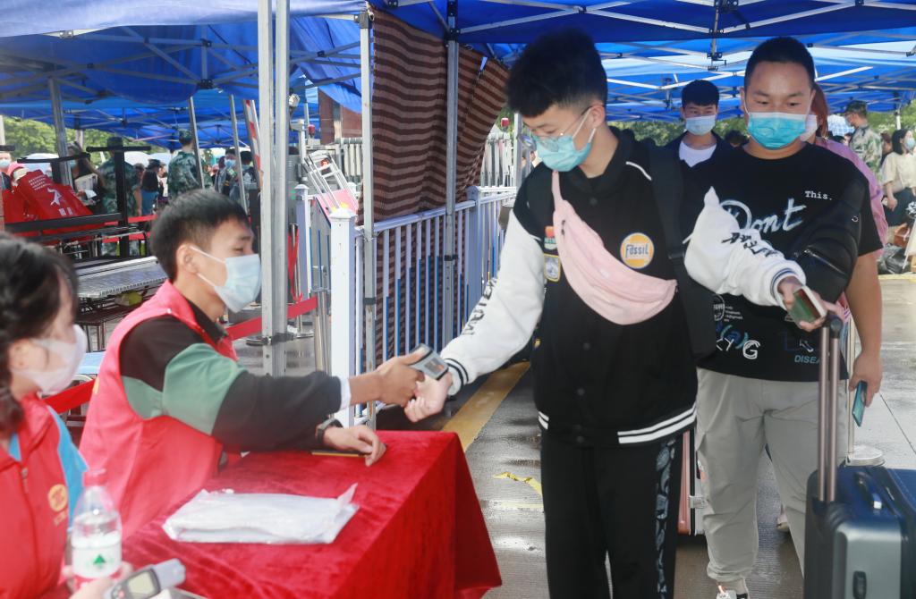 新生按防疫要求测温入校