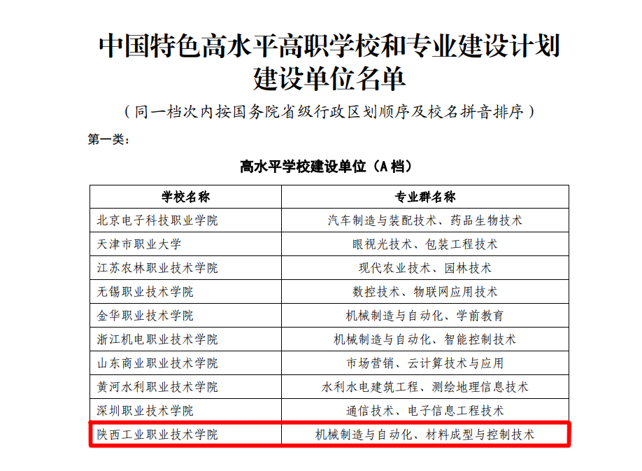 2019年12月我校成功入选中国特色高水平高职学校(A档)建设单位