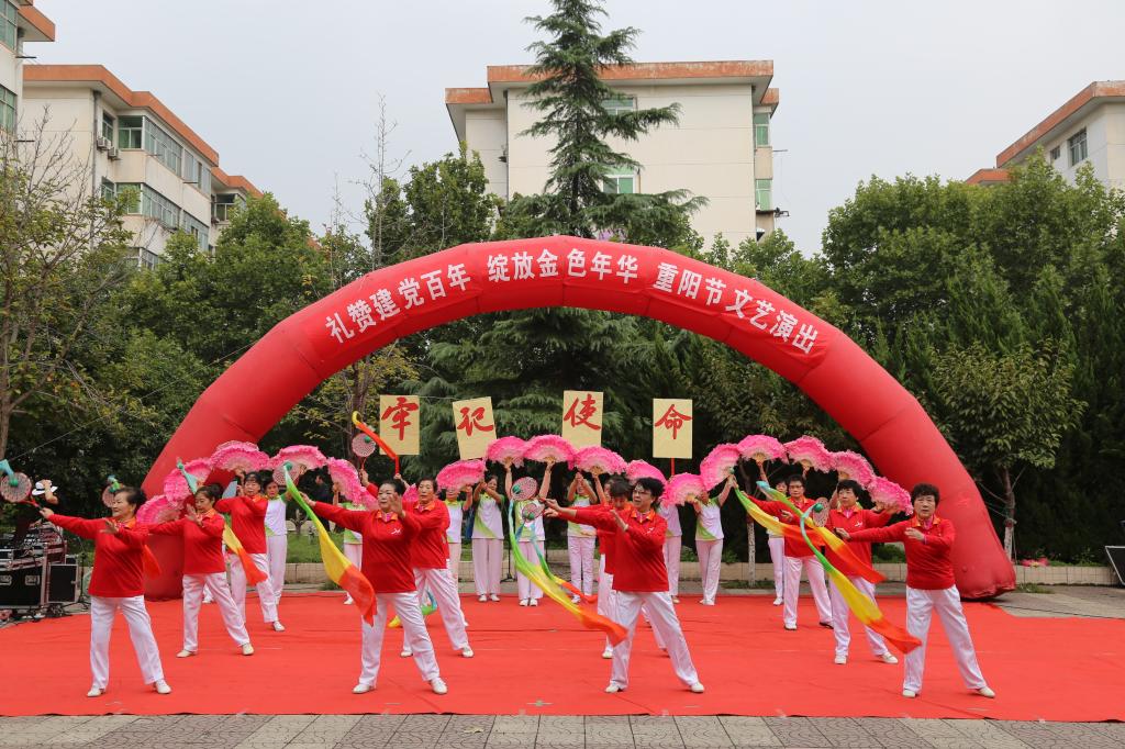 文艺演出以合唱《我和我的祖国》、《你是血脉我是血》开始,演出节目形式多样、丰富多彩,有柔力球表演《各族儿女心向党》、《没有共产党就没有新中国》;太极表演《太极拳精要十八式》、《武当太极剑》;舞蹈《万疆》、《灯火里的中国》;时装表演《动感的旋律》、《长鼓舞敲起来》等。最后,文艺演出在秦腔表演《屠夫状元》、《大家欢喜》中落下帷幕。精彩演出赢得了场下一阵阵热烈的掌声。
