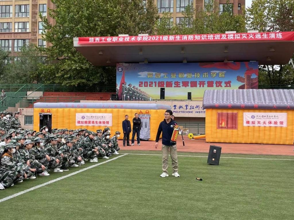 为了强化学生安全意识,提高紧急避险能力,促进学校多部门协同处置校园危机的能力,10月14日下午在我校田径运动操场,保卫处、学生处联合组织我校新生进行消防知识培训及模拟灭火逃生演练活动,学生安全员、消防指导老师及2021级新生参加了此次活动。