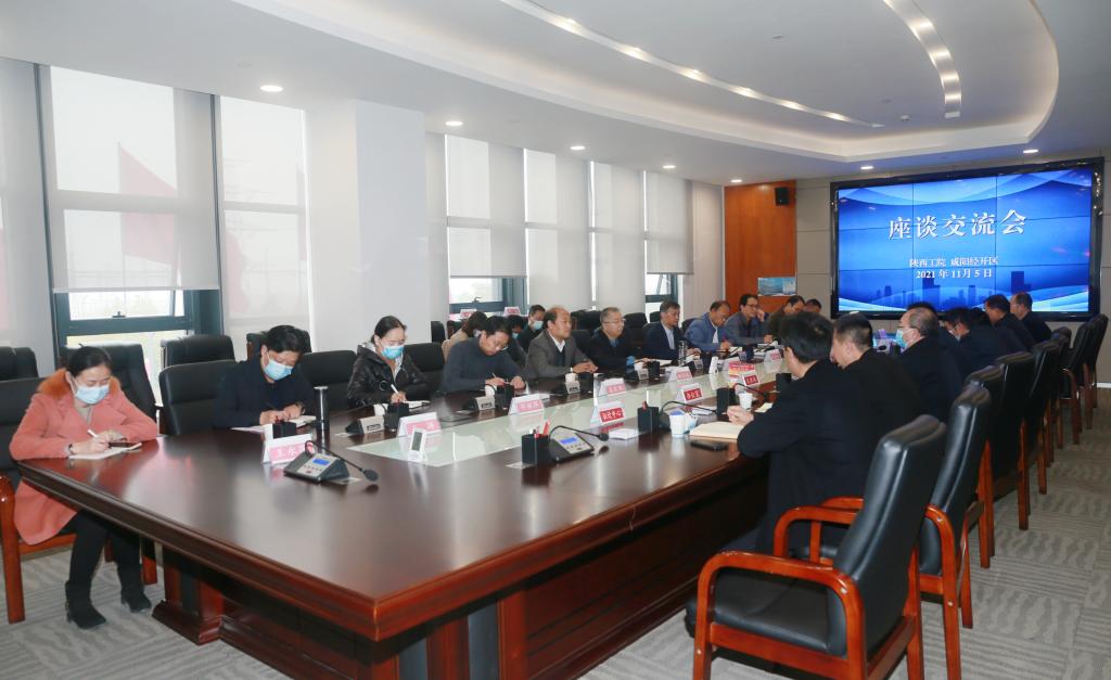 在新校区一期项目建设进入收官冲刺之际,11月5日,党委书记惠朝阳,党委副书记贺天柱,副校长梅创社、刘清携党政办、工会、财务处、校企合作处、基建处、后勤处等相关部门负责同志赴咸阳市经开区,与经开区党工委副书记、管委会主任张永强,副主任吴君尚、周晓东就我校新校区一期项目城市配套建设工作以及二期建设用地规划供给进行了交流座谈。