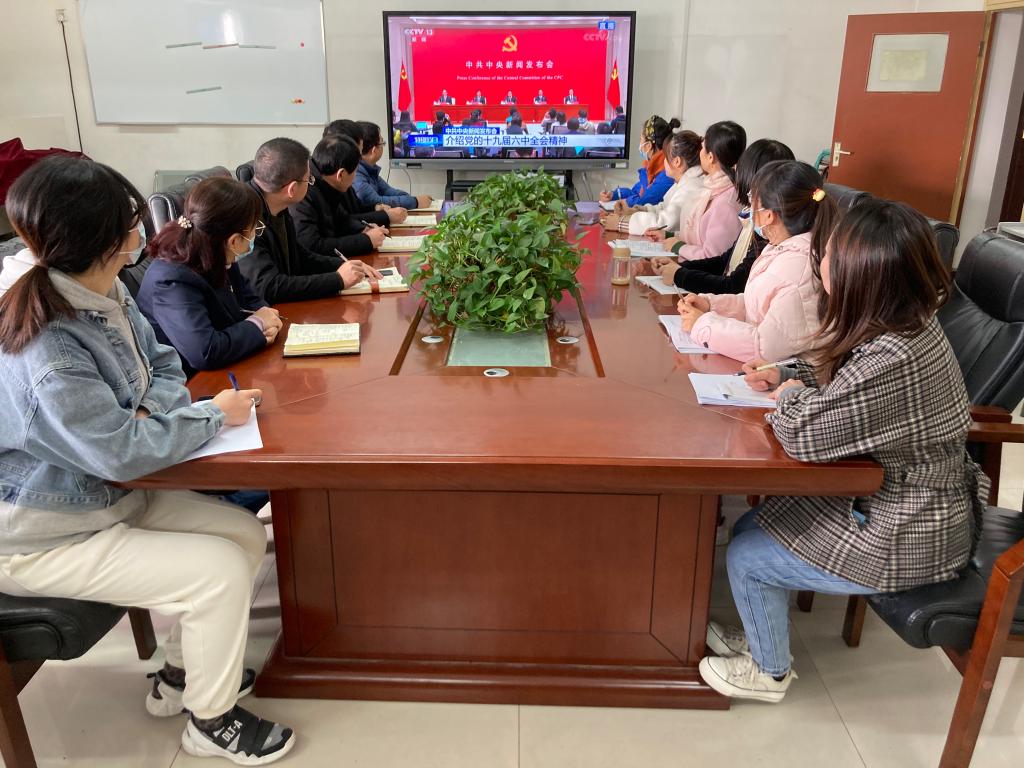 11月12日上午,中共中央在京举行星空(中国)发布会,介绍党的十九届六中全会精神, 根据省委教育工委要求和学校党史学习教育安排,我校在崇文楼第五会议室设立主会场,组织党委中心组成员、处科级以上干部、思政教师及学生代表共同观看大会直播。此外,各二级学院、处级单位也根据实际情况,采取不同形式集中收看发布会实况。
