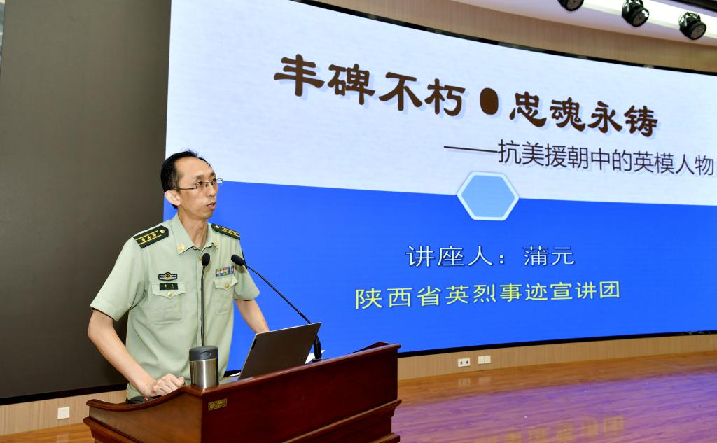 报告会上,李俊春巡视员、贺天柱副书记先后致辞,蒲元副主任以《丰碑不朽、忠魂永驻——抗美援朝中的英模人物》为题作了英烈事迹宣讲,带领同学们回顾了抗美援朝战争艰苦卓绝的岁月,重温了杨根思、冰雕连等志愿军英烈感人至深的故事。学校大学生艺术团的同学们表演了以讴歌延安精神为主题的诗朗诵《一条路•一盏灯》。最后,宣讲活动在全场师生《歌唱祖国》的歌声中圆满结束。
