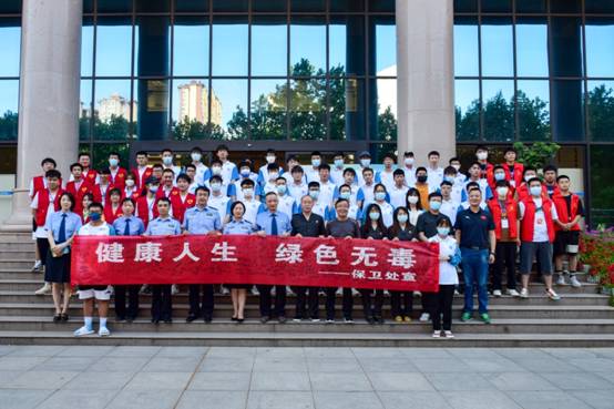 为进一步加强校园禁毒宣传,增强学生对毒品危害的认识,提高学生自觉抵制毒品的意识,为在校学生营造良好的成长环境。6月23日下午,在“国际禁毒日”来临之际,我校保卫处联合咸阳市公安局渭城分局、渭城区检察院、渭城区人民法院、文汇路派出所、文汇路街道办等各单位,在我校精艺楼前开展了“健康人生 绿色无毒”禁毒宣传进校园活动。