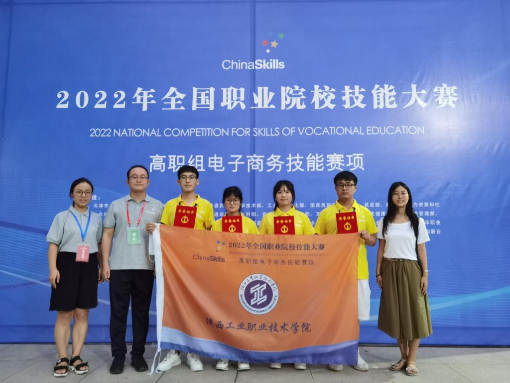 7月30日-31日,2022年全国职业院校技能大赛高职组“电子商务技能”赛项在安徽商贸职业技术学院举行,全国各省、自治区、直辖市以及新疆生产建设兵团的65支代表队参加了本次比赛。我校商贸与流通学院李思维、张焕、杨欣三位教师指导的黎宇豪、孟龙、崔倩倩和陈小雨四位同学组成的代表队代表陕西省参赛。经过两天的激烈角逐,最终荣获国赛团体二等奖。