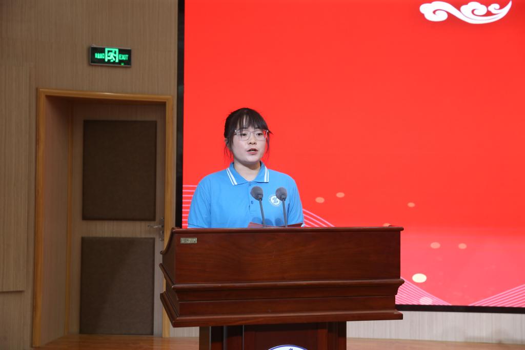 物联网应用技术专业2002班贺妍妍作为在校生代表发言。她结合自己在校求学历程,希望学弟学妹们都可以找到属于自己的青春之路,秉承学校“明德、笃学、精艺、强身”的校训,脚踏实地、不负所望、努力奋进,勇担时代重任,学习技能报国。