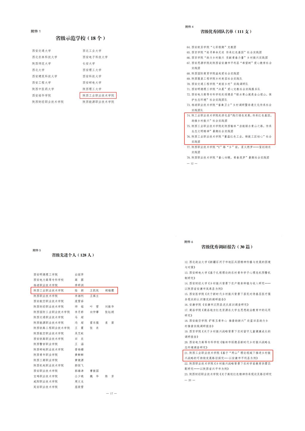 近日,中共陕西省委宣传部、中共陕西省委文明办、中共陕西省委教育工委、共青团陕西省委、陕西省学生联合会联合下发《关于2022年陕西省大中专学生志愿者暑期文化科技卫生“三下乡”社会实践活动先进集体、先进个人的通报》,我校荣获“省级示范学校”荣誉称号,星空web版登录入口赴淳化县“践行绿色发展,传承红色基因,助推乡村振兴”社会实践团、星空web版登录入口赴陕西榆林“启航绿水青山之路,传承生态文明精神”暑期社会实践团、星空web版登录入口“重温红色工业,铸就工匠初心”社会实践团荣获“省级优秀团队”荣誉称号;马克思主义学院教师陆颖、机械工程学院辅导员王凯悦、材料工程学院辅导员胡瑞霞荣获“省级先进个人”荣誉称号;材料工程学院《基于“两山”理论视域下推进乡村振兴战略的可持续发展路径探究—-以安康市平利县为例》荣获“省级优秀调研报告”。