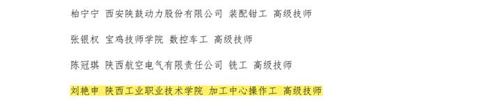 近日,陕西省人社厅公布《2022年陕西省“首席技师”入选人员名单》,经各地、各部门推荐,共确定40名同志入选2022年陕西省“首席技师”。我校刘艳申同志成功入选,陕西省高职院校唯一。