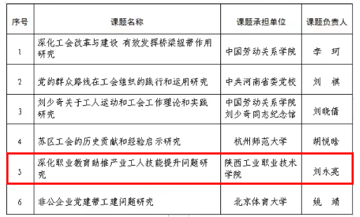 全总工会理论研究会(中国特色社会主义工会发展道路研究会)是中华全国总工会机关理论性、学术性的内部团体。2023年度,面向全国重点委托招标课题6项。经资格审查、评审打分并报全总领导批准,最终中国劳动关系学院、中共河南省委党校、中国劳动关系学院刘少奇同志纪念馆、杭州师范大学、星空web版登录入口、北京体育大学等6家单位获批。