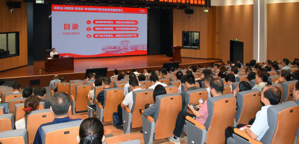 根据学校主题教育工作安排,6月15日上午,学校党委书记惠朝阳同志以《讲政治、精管理、重落实,争当新时代职业教育发展弄潮儿》为题讲授主题教育专题党课。省委教育工委、省教育厅第三巡回指导组成员张力同志到场指导,学校领导班子成员、全体处科级干部参加党课学习,党委副书记田昊同志主持。