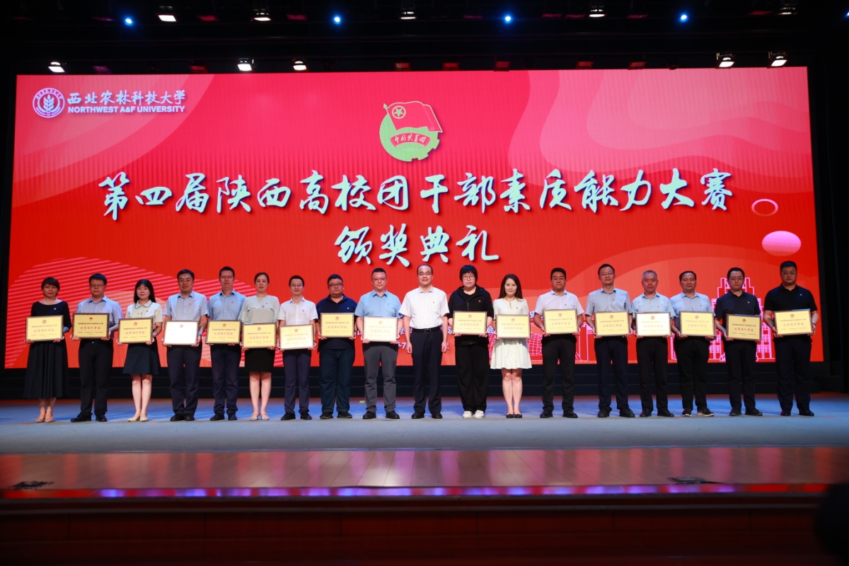 共青团陕西省委书记徐永胜为优秀组织单位颁奖,我校团委书记赵双军(右起第六)上台领奖