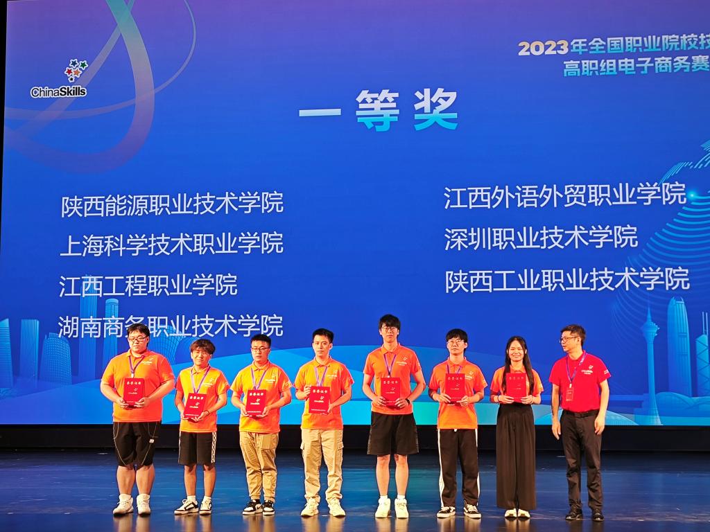7月25日-26日,2023年全国职业院校技能大赛高职组“电子商务”赛项在广东科学技术职业学院举行,来自全国各省市自治区直辖市的74支队伍参加。我校商贸与流通学院李思维、杨欣两位教师指导的电商2002孟龙、电商2101王一一、电商2102帖秋平和电商2102孟庆燚四位同学组成的代表队,荣获国赛团体一等奖,李思维和杨欣两位老师获评优秀指导教师。
