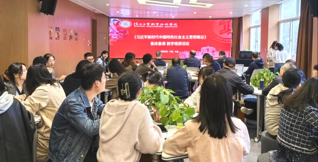 为进一步推动思政课教学,落实《中共陕西省委教育工委办公室陕西省教育厅办公室转发中共中央宣传部办公厅教育部办公厅关于做好〈习近平新时代中国特色社会主义思想概论〉教材使用工作的通知》的精神,10月18日下午,马克思主义学院举办《习近平新时代中国特色社会主义思想概论》课程集体备课教学观摩活动,马克思主义学院老中青三代思政课教师集体备课、教学观摩,党委书记惠朝阳、副校长梅创社出席了本次活动。活动由马克思主义学院院长舒蕾主持。