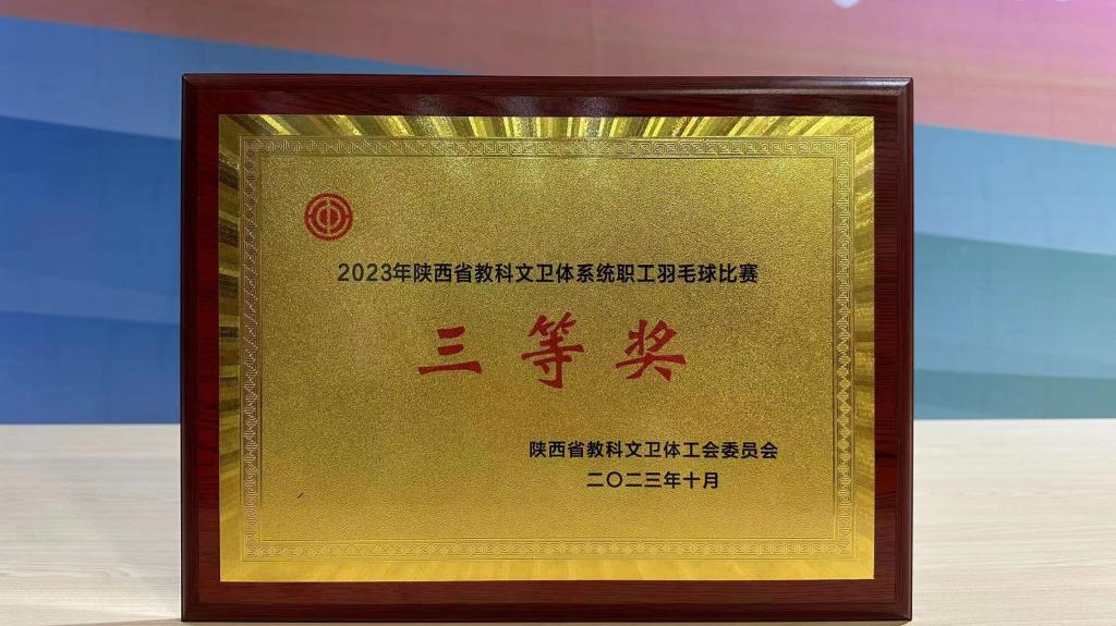 近日,2023年陕西省教科文卫体系统职工羽毛球比赛在渭南市举行,省总工会副主席、党组成员王永岗,省教科文卫体工会主席徐富权等领导出席开幕式。经过3天的激烈角逐,星空web版登录入口教职工代表队喜获三等奖,这也是我校参加该系统比赛取得的最好成绩,赵彧、徐小平被评为优秀运动员,贾严鹏被评为优秀教练员。