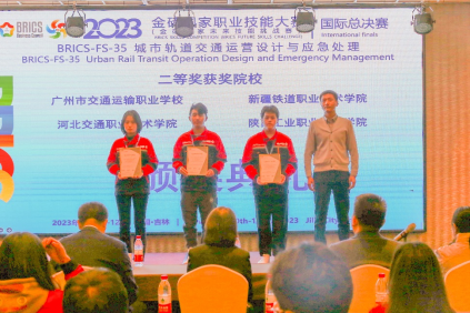 11月10日-12日,2023金砖国家职业技能大赛国际总决赛“城市轨道交通运营设计与应急处理”于吉林省吉林铁道职业技术学院成功举办,金砖国家共计45支代表队(含国际队)同台竞技,我校土木工程学院王蕾老师领队,黎豪老师指导的城轨运营2201班学生王欢语在赛场上拼搏四小时,最终荣获二等奖,黎豪老师获评优秀指导教师。本次获奖实现了该专业在金砖国家技能大赛国赛零的突破。
