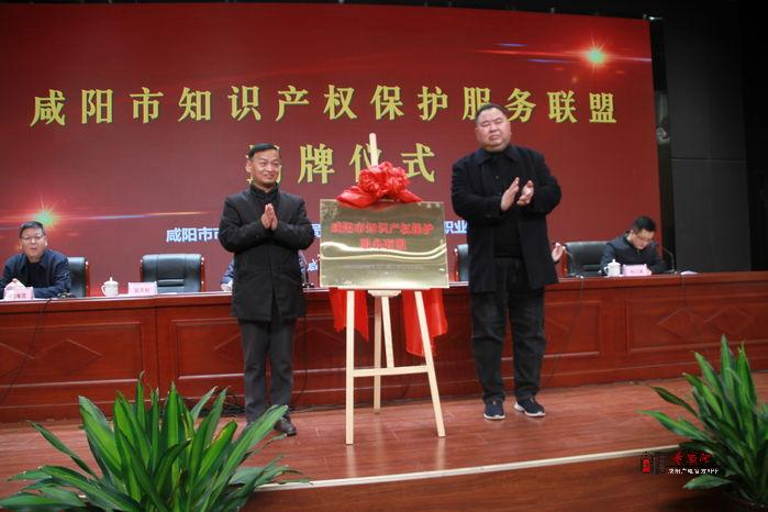 党委副书记贺天柱、市市场监管局二级调研员张文军共同为咸阳市知识产权保护服务联盟揭牌