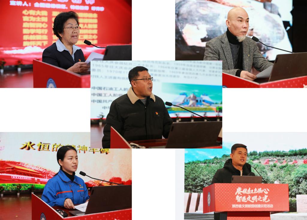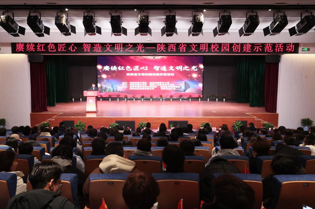 12月22日下午,由陕西省委文明办、陕西省委教育工委主办,咸阳市委文明办、我校承办,延安枣园革命旧址管理处、秦始皇帝陵博物院、咸阳纺织集团有限公司、西安石油大学协办的“赓续红色匠心 智造文明之光”全省高职首场文明校园创建示范活动在我校举行。省委文明办创建处处长贺聪梅,咸阳市委文明办副主任李元军,省委教育工委宣传部干部向楠,校党委书记惠朝阳、党委副书记田昊出席活动。省委文明办及咸阳市委文明办相关人员,部分西安及驻咸高校、咸阳地区12所中小学的师生代表们参加了本次活动。