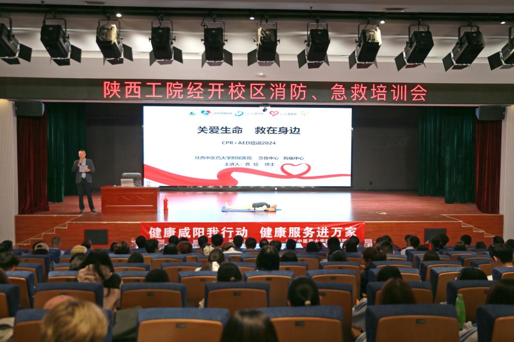 为深入落实消防安全主体责任,切实提高广大学生、教职员工消防安全意识和自防自救能力,坚决防范和遏制火灾事故发生,落实省教育厅《关于联合开展春季学校火灾疏散逃生大演练活动的通知》指示要求,4月9日下午,我校保卫处、后勤处邀请属地消防所及陕西中医药大学附属医院急救中心来我校经开校区进行消防安全和急救知识培训,二级学院师生、相关职能处室人员、在校商户等300余人参加,学院党委副书记贺天柱出席本次培训活动。