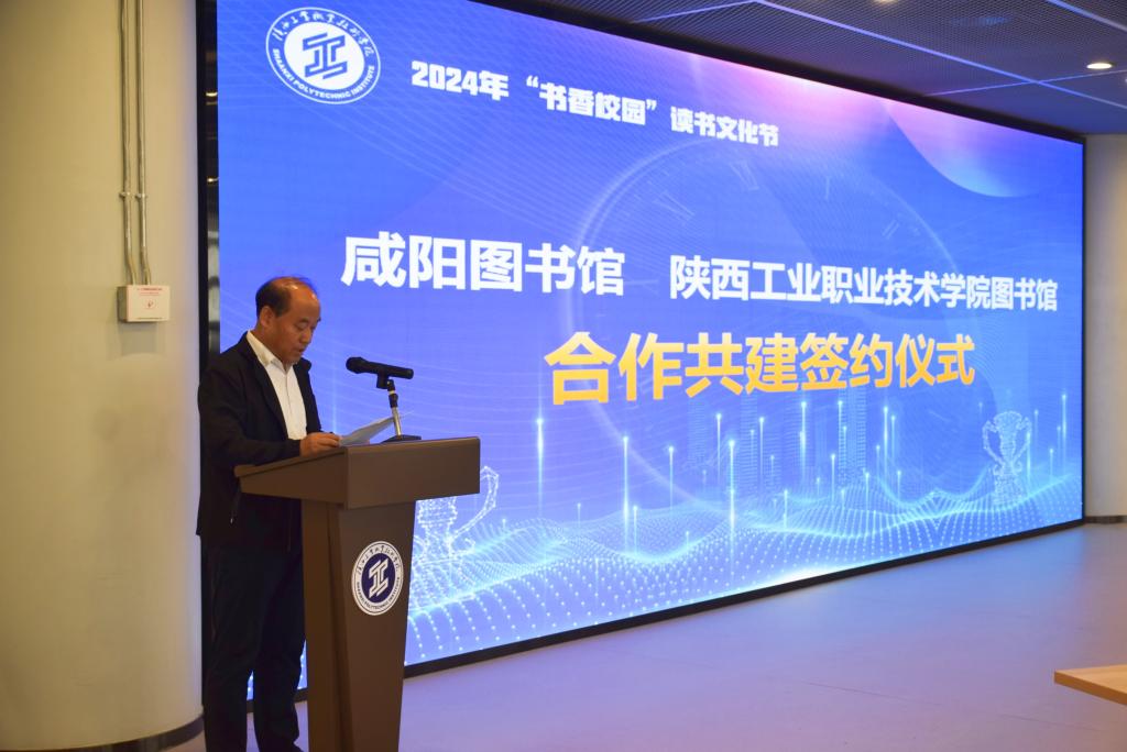 在咸阳图书馆与我校学院图书馆合作共建签约仪式上,我校副校长梅创社作致辞发言。他指出,各级各类图书馆都是全民阅读工作的主要阵地、核心力量和重要组织者,近年来,咸阳图书馆与我校图书馆一直保持着密切友好的交流与合作,这一次的两馆合作共建,是高校图书馆与公共图书馆的友好牵手,在新一代信息技术的加持下,两馆优势互补、资源共享,必将进一步提升双方的服务水平和综合实力。