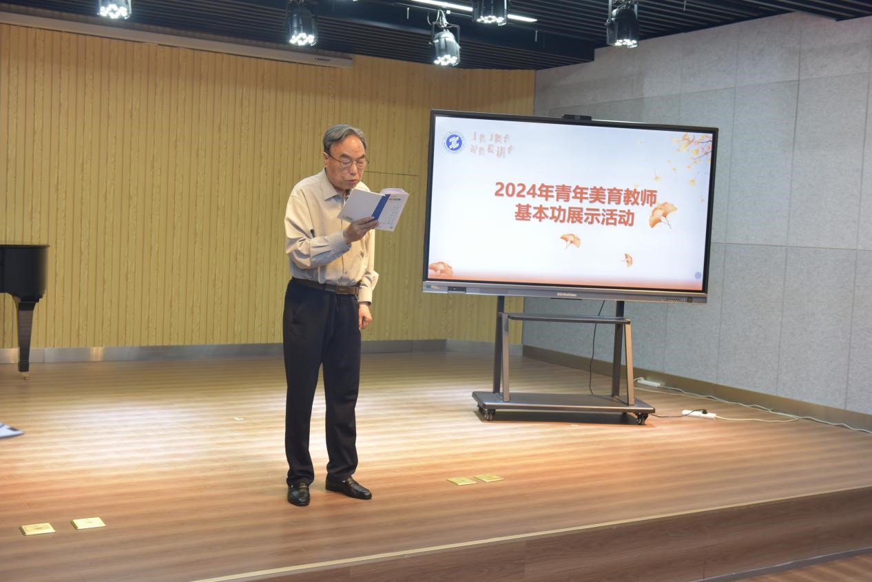首先由美育部部长付胜利教授致辞,他介绍了本次展示活动的主题与意义。青年美育教师基本功展示活动以“上得了舞台,站得稳讲台”为主题,设置有教学能力展示和艺术专业能力展示两个模块,促进青年教师扑下身子,夯实基础,善于学习,勤于思考,勇于进取,成为上得了舞台的艺术名家和站得稳讲台的美育名师。