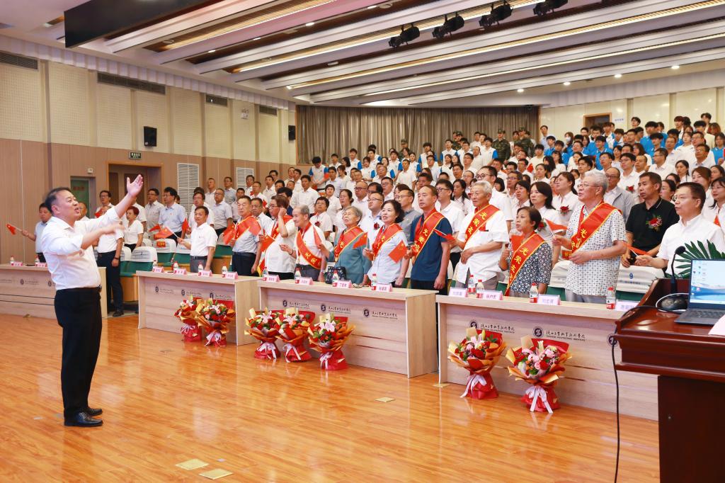 在庆祝中国共产党建党103周年之际,7月1日下午,我校隆重召开“七一”表彰大会暨党纪学习教育推进会,动员各基层党组织和广大党员练本领、守纪律、抓整改、创一流,用实际行动推动学校高质量发展再上新台阶,奋力开启“引领改革、支撑发展、中国特色、世界水平”新征程。