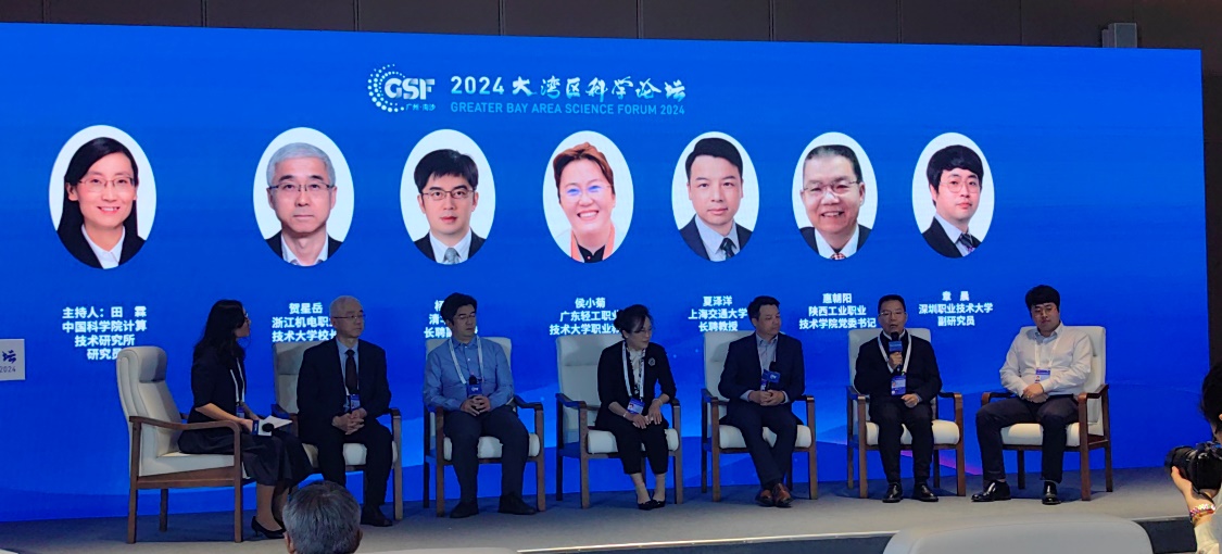 本届论坛由广东省人民政府、香港特别行政区政府、澳门特别行政区政府共同主办,诺奖得主、院士及专家大咖齐聚南沙,共同为大湾区更好参与全球科技创新、加快打造具有全球影响力的产业科技创新中心展开深入讨论。我校党委书记惠朝阳参加了主会场开幕式及产教融合人才培养分论坛,并在分论坛上作为特邀嘉宾发言,参加分论坛的院校及科研院所还有中国科学院、清华大学、上海交通大学、深圳职业技术大学等专家学者。