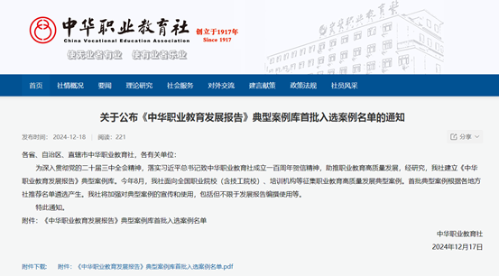 我校入选中华职教社《中华职业教育发展报告》典型案例库