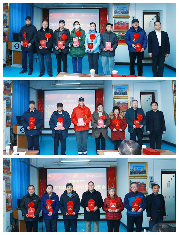 党委副书记田昊宣读2024年度“五好党员”名单,学校领导分别为获得“五好党员”荣誉的老同志颁发了荣誉证书。离退休党总支书记张科海、离退休党支部书记代表刘绍萌、“五好党员”代表葛晓枫分别作了发言。
