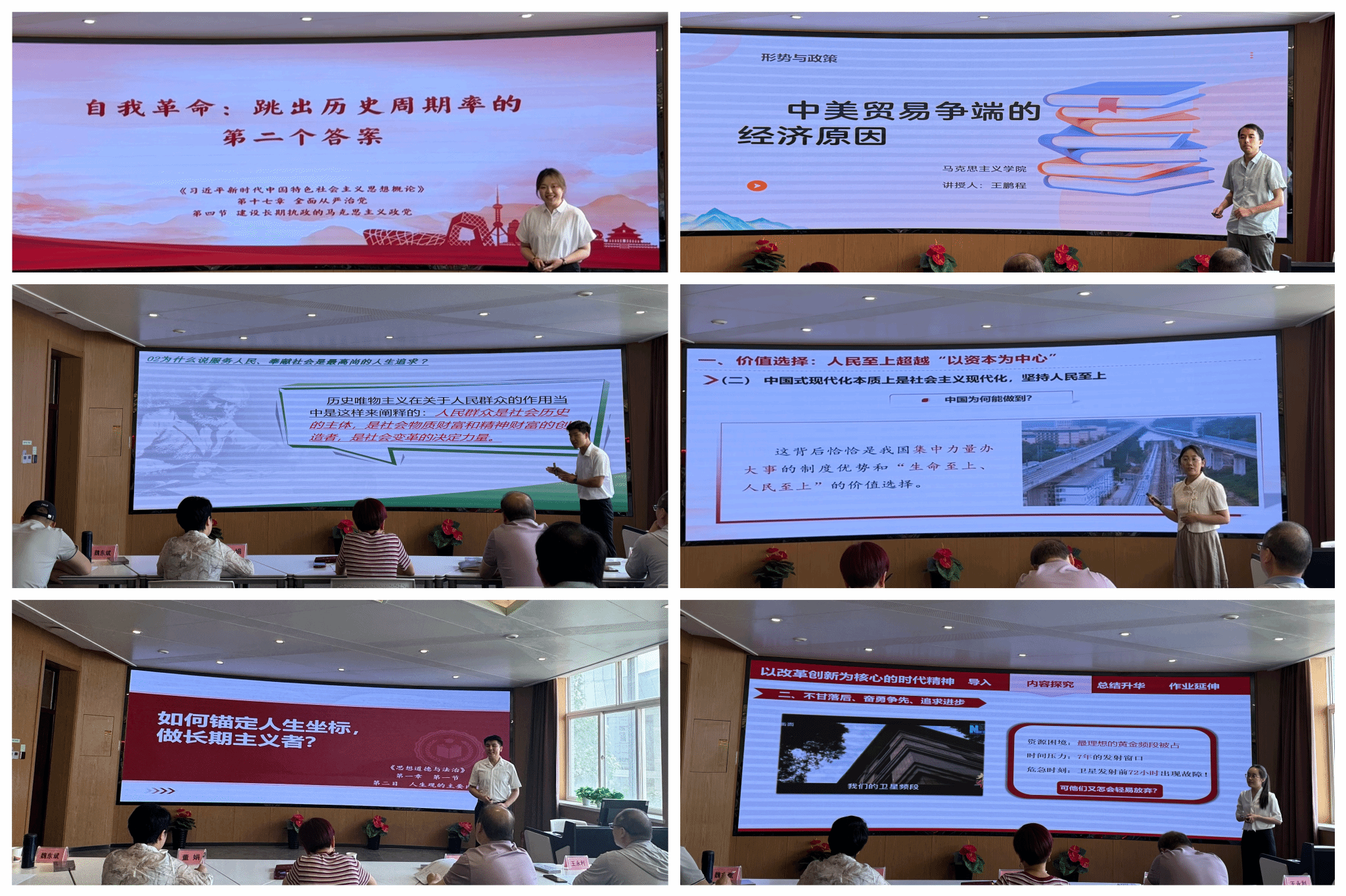 最后,惠朝阳在总结讲话中指出,这次展示活动不仅是对教师个人教学能力的一次集中检阅,更是推动马克思主义学院转职能、转作风、转方式的探索创新。作为思政课教师,要面向学生、走近学生,要用接地气的方式了解学生,用生活小切口讲好思政大道理,“大练兵”的意义也正在于此。他勉励青年教师要持续提升理论深度,深耕课堂,创新教学方法,解决学生的思想困惑,努力成为塑造学生品格、品行、品味的“大先生”,全力推动我校思政课建设内涵式发展,为培养担当民族复兴大人的时代新人提供坚实的思想保障和强大的精神动力。
