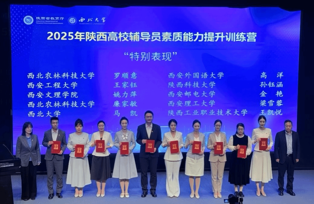 11月5日至7日,由中共陕西省委教育工委、陕西省教育厅主办的2025年陕西高校辅导员素质能力提升训练营在西北大学长安校区举办,全省共135名高校辅导员参加训练营。我校机械工程学院辅导员王凯悦凭借扎实的专业素养和出色的现场表现,荣获“特别表现”奖。