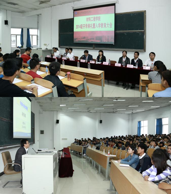 同日,材料工程学院2014级新生“起航工程”暨入学教育系列活动启动。材料工程学院党总支书记、院长张普礼,教务处副处长赵明威,材料学院党总支副书记郭旭华,副院长韩小峰和2014级410余名新同学参加了会议。