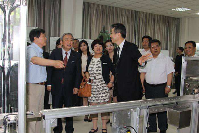 党委书记邓志辉致欢迎辞。他对立石文雄会长一行的到来表示欢迎,对欧姆龙公司给予欧姆龙订单班的大力支持表示感谢。立石文雄会长一行听取了电气工程学院院长卢庆林对欧姆龙订单班进展情况的汇报,双方就陕西工院与欧姆龙校企合作事宜进行了深入交流。