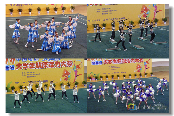 5月28至30日,由省教育厅主办,省学生体育协会和西安邮电大学承办的2014年陕西省大学生健康活力大赛在西安举行,全省11所高职院校代表队参加了高职组6个项目的比赛。经过全体参赛队员、教练、领队的共同努力和精彩展示,我院代表队荣获啦啦操爵士套路第一名,中国风健身舞(蒙古舞)第二名,街舞自选套路第二名,街舞规定套路第二名,啦啦操花球套路第四名,有氧踏板规定套路第五名。