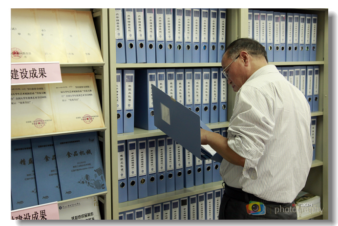 专家组组长李迈强教授查阅学院教职工队伍相关资料