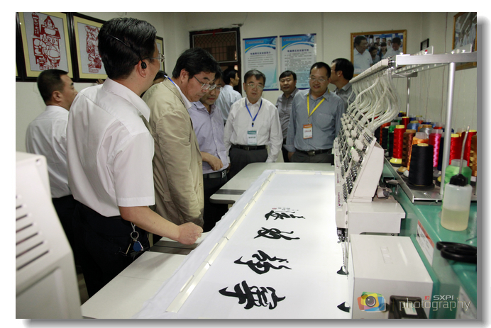 专家组一行观看电脑绣花演示