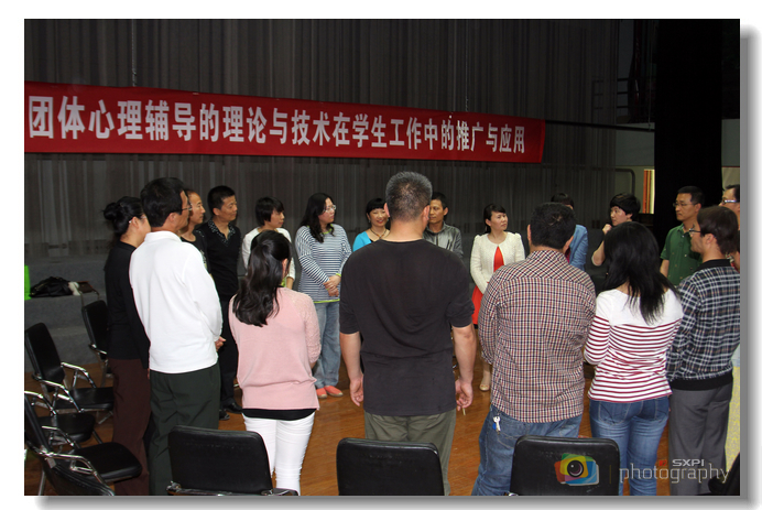 在下午的团体辅导体验活动中,贠丽萍副教授按照团体心理辅导的基本设计框架,从“刮大风”和“花样握手”这两个热身游戏开始,通过小游戏使大家打消了顾虑,拉近了彼此之间的关系;进入正式的“相识”阶段后,通过“两两沟通”、“串串烧”、“成长三部曲”等环节使大家在“被聆听”、“被接纳”、“被尊重”中变得越来越熟悉,越来越亲密。接下来的“走出圈外”活动,大家以小组的形式分享了快乐、烦恼、目标、个性等几个话题。