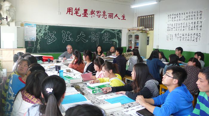 讲座中,王颖哲老师从自己的亲身经历出发,就如何学习书法,如何临摹、创作及书法的题款知识等方面做了精彩的讲解。他旁征博引,深入浅出的通过理论讲解和现场挥毫创作,不仅让我院书法爱好者领略了书法的艺术传承和美感,而且受到了很好的书法艺术熏陶。讲座互动环节,同学们欣赏了王老师的书法作品,请教了学习书法的技巧,提出了自己在学习书法过程中遇到的问题,王老师一一给予解答,并针对部分学生的书法作品进行了精彩点评。