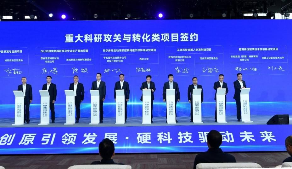 11月,在2025秦创原发展论坛、硬科技创新大会上,作为唯一高职院校与彩虹集团特种玻璃有限公司签订陕西省重大科研攻关与转化项目。