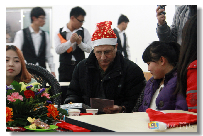 12月19日晚,工商管理学院酒店管理实训室里欢声笑语、歌声悠扬,一派节日气氛,我院为四名外籍教师举办的新年联欢会在这里举行。外事办、工商管理学院、基础部的负责人和参加出国人员英语、德语培训班的学员们与外籍教师欢聚一堂,共享节日欢乐,喜迎新年到来。