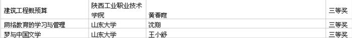 土木学院鞠森森老师的《建筑材料》、物流学院贺彩玲等老师的《仓储作业管理》、土木学院黄春霞老师的《建筑工程概预算》分获高职理科组、文科组及微课程组三等奖。工商学院何奇彦等老师的《餐饮服务与管理》、材料学院刘洋老师的《铝合金铸件铸造技术》、物流学院郑娜等老师的《中外民俗》、材料学院王建军老师的《模具制作与装配》分获省级一、二、三等奖及优秀奖。