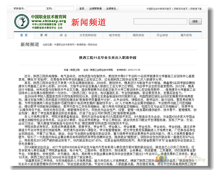 11月26日,《陕西日报》科教版头条以“陕西工院11名毕业生入职清华园”为题刊发消息,对我院教育教学改革、毕业生就业等工作进行报道。《华商报》、中国教育星空(中国)网、陕西省教育厅网站、中国职业技术教育网、陕西教育网等多家媒体也分别进行了报道,各媒体链接如下: