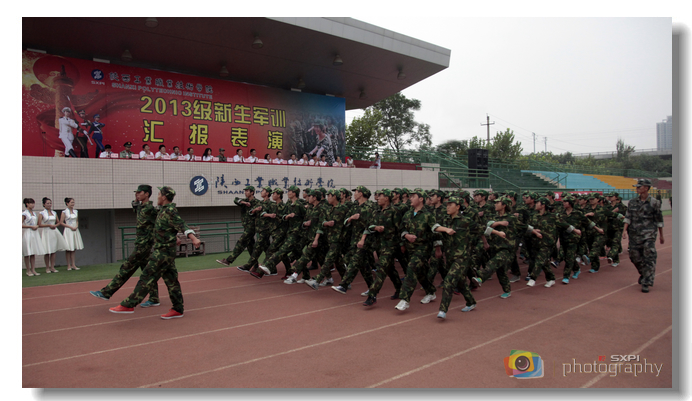 9月18日早,我院2013级新生军训汇报表演暨表彰大会在田径运动场举行,近6000名参训新生意气风发、斗气昂扬,用齐整的军容、矫健的步伐、响亮的口号为持续10天的军训工作画上精彩的句号。党委副书记王天哲、承训部队领导和各二级学院党总支书记出席会议。会议由学工部副部长、团委书记闫军主持。