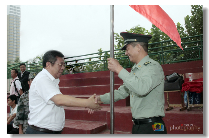 党委书记邓志辉为2013级新生军训团授旗并宣布开营