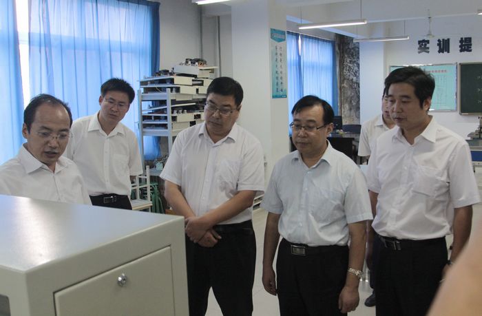 会前,程建国副市长一行在王晓江副院长的陪同下参观了机加工实训中心、欧姆龙实训室、化工技术实训基地等教学实训场所。