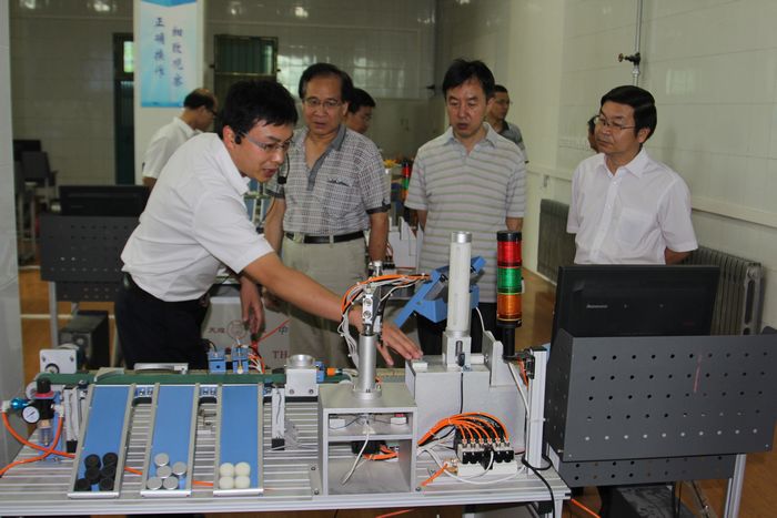 验收专家组成员参观机电一体化实训基地