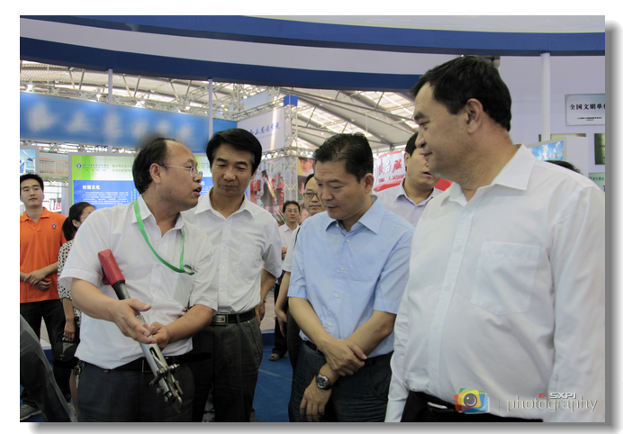 省委教育工委书记李仲为、教育厅厅长李兴旺观看我院学生设计制作的“火药钳”