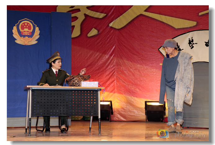 演出舞台上,主持人与我院学生趣味互动,赢得全场阵阵掌声,吼一声秦腔《陕西人》演出开场,以秦韵秦风的陕西话歌曲感染,民间百态的老百姓同台同唱同演,体现淳朴的陕西民风民情,热闹的开场在舞台声光电的配合下美不胜收。接下来,小品《少管所》通过管教与失足青年的对话故事,反映了青少年教育是全社会关注的问题,诙谐幽默,引人深思。《办公室的故事》通过一个信访干部和农村妇女蛮不讲理来闹事的一段趣事,反映一个全心全意为人民服务的好干部。《可爱的局长》通过上门采访某局长的记者和一位时常冒傻气的局长妻子之间的对话,笑料迭出。整台演出的五个小品,从不同侧面展现了新时期的美好生活,同时,还穿插着舞蹈《民族风》、歌曲《公仆心》,魔术表演等,精彩的演出使得现场笑声、掌声融合在一起,成了欢乐的海洋。以著名书画家王西京、刘文西、罗国士、吴三大等名家字画做的舞台装饰,体现了三秦文化和戏剧的结合,更反映了三秦文化的深厚底蕴。最后,演出在舞蹈《和谐家园》欢快的旋律中落下帷幕。晚会形式新颖、清新大气,演员们精彩的表演深深地吸引了观众,幽默的陕西方言更是让观众倍感亲切,陕西方言的台词,有着浓郁的三秦味道的“秦人新风”精彩的演出给我院师生留下了深刻的印象