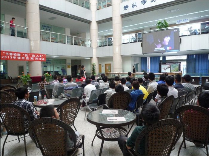 4月25日,图书馆特邀新东方名师董宁为我院学生作了一场题为“兴趣与英语学习”的专题讲座,这次讲座是图书馆“书香校园 ‘悦’读人生”2013年读书月的系列活动之一。百余名学生在图书馆一楼大厅认真聆听了董老师的精彩讲学。