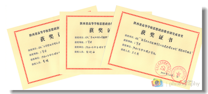 会议对2012年全省高校宣传思想和精神文明建设工作的各项先进进行了表彰。我院获“教育部高校校园文化建设优秀成果二等奖”、“全省高校精神文明建设和宣传思想工作先进集体”、“全省高校校园文化建设优秀成果一等奖”、“陕西大学生在线共建高校突出贡献奖”,机械工程学院获“全省高校精神文明建设先进集体”,王天哲、张科海、董娟同志分获“陕西高校思想政治教育研究成果三等奖”。
