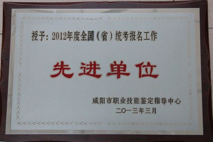 我院荣获咸阳市2012年度全国(省)鉴定统考报名工作先进单位